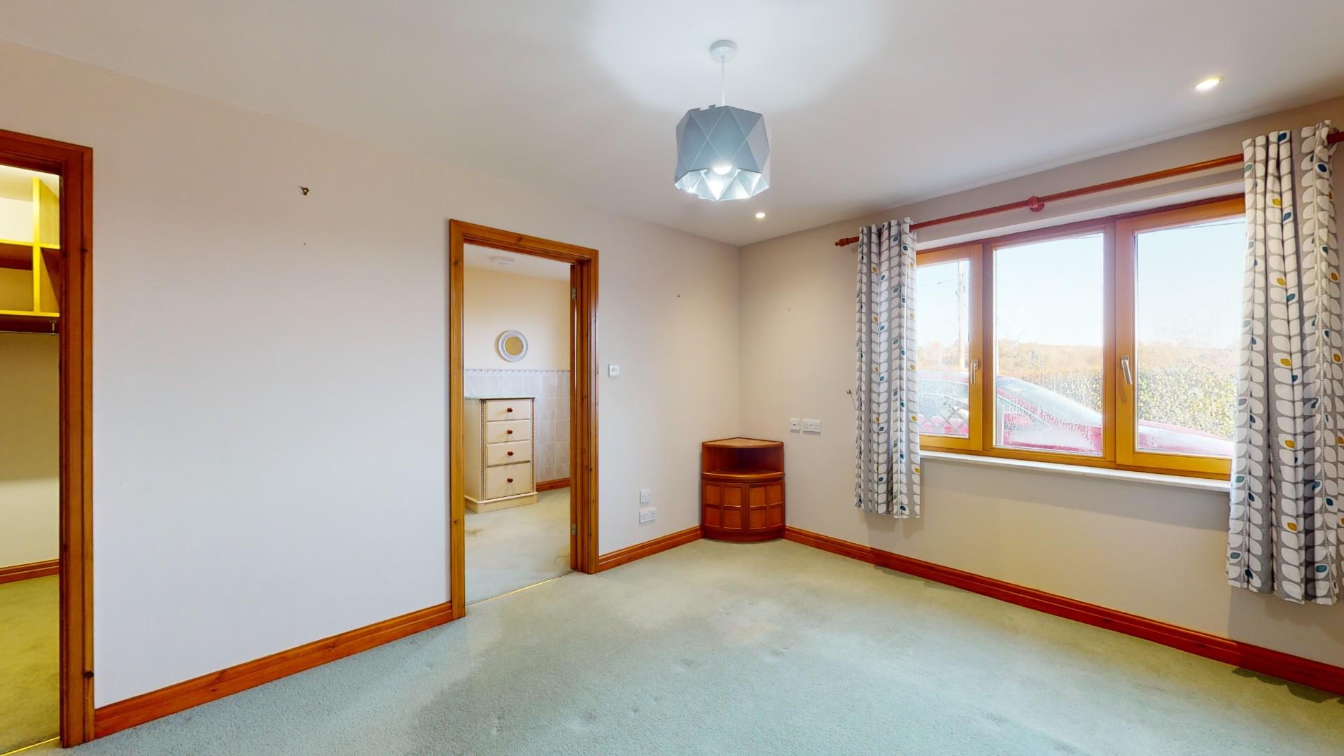 Two double glazed windows affording far reaching views and double glazed french doors opening to a covered patio. TV point and wall light points.