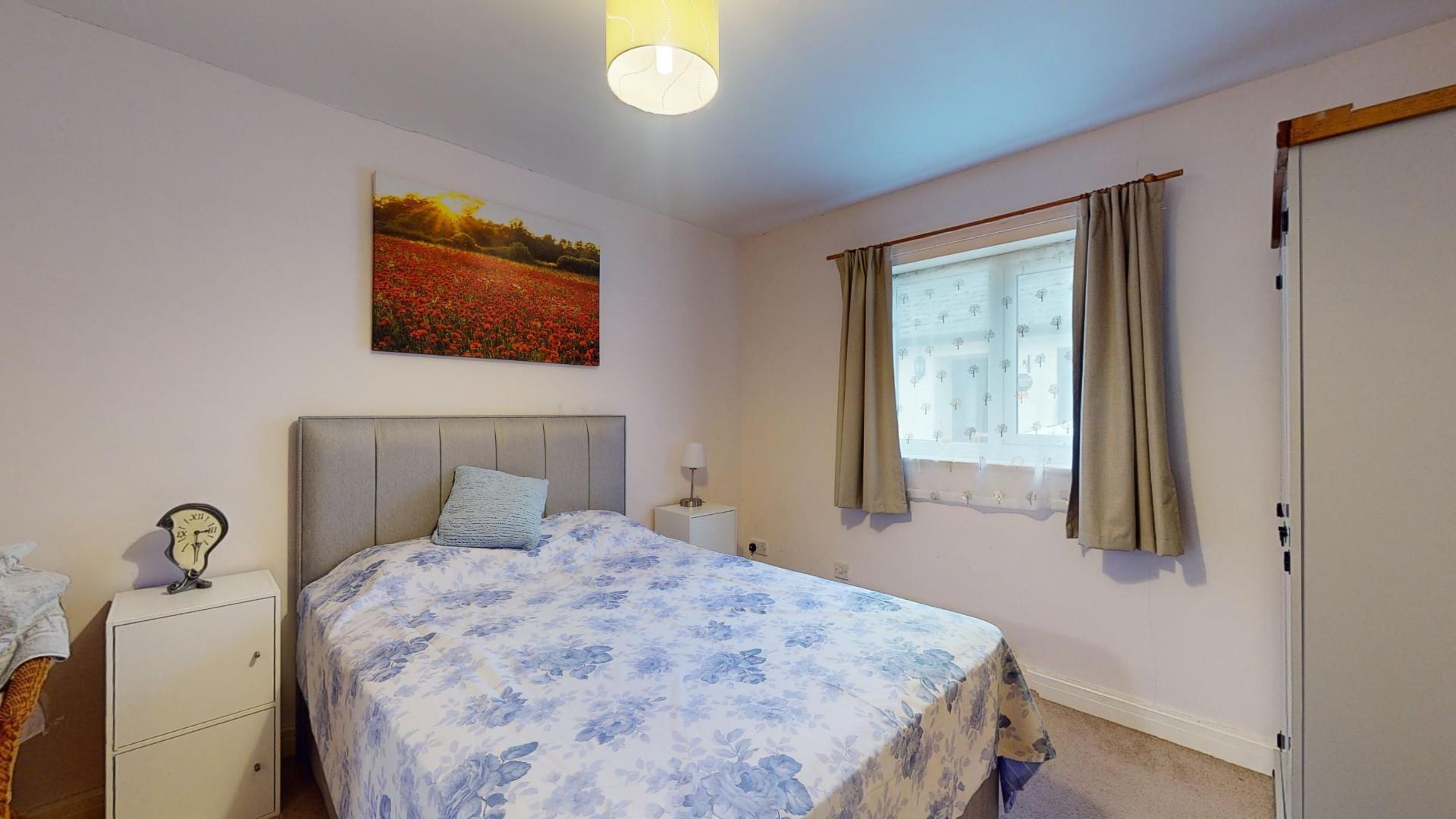 Double glazed window to front, fitted wardrobes to one wall comprising a range of double door units with hanging rails and locker storage cupboards over, knee hole dressing table, panelled radiator.