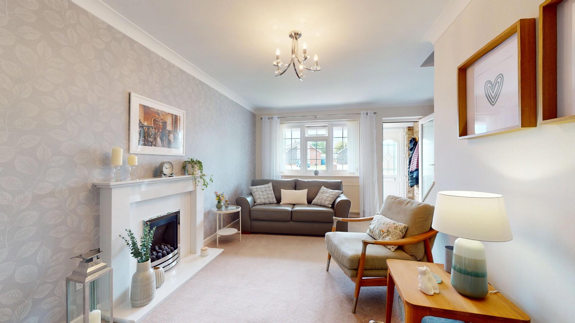 The property stands in a much larger than average corner plot with a fine brick paved driveway to front providing ample space for parking two cars and access to the integral garage. There are open plan lawned areas to either side with attractive brick detailing to the pathway leading to the canopy entrance and front door.